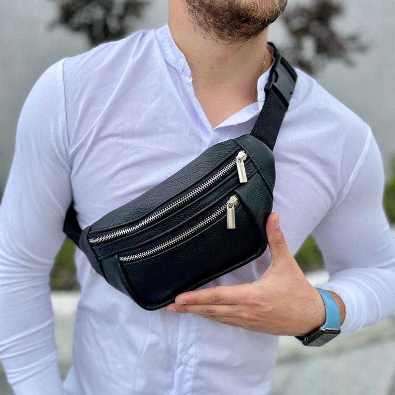 Ищите стильную и функциональную сумку для своих повседневных нужд? Наша кожаная бананка сумка черного цвета – это отличный выбор для мужчин и женщин. Эта сумка имеет 3 удобных кармана на замотках, что обеспечивает безопасность и легкий доступ к вашим вещам. Размер сумки 30 см (ширина) x 23 см (высота) x 6 см (толщина) идеально подходит для хранения вашего телефона, кошелька, ключей, планшета и даже небольшого ноутбука. Характеристика: Регулируемый ремень: Ремень сумки можно легко настроить на нужную высоту, что делает ее удобной для любого человека. Качество кожи: Мы используем только высококачественную кожу, чтобы обеспечить долговечность и надежность нашей сумки. Унисекс дизайн: Черный цвет и стильный дизайн делают эту сумку универсальной и подходят как для женщин, так и для мужчин. Легкий вес: Несмотря на свою емкость, эта сумка имеет легкую конструкцию, что делает ее легкой для переноски и не создает лишней нагрузки на плечи. Универсальность: Эта сумка подходит для любой ситуации, будь то прогулка, путешествие или работа. Мы используем только лучшее качество кожи и комплектующих для нашей бананки сумки. Надежные замочки и фурнитура обеспечивают долговечность и удобство использования. Интервичный дизайн сумки делает ее универсальной и подходит для любого образа. Не медлите, закажите нашу качественную кожаную бананку сумку уже сейчас и наслаждайтесь ее удобством и стилем!