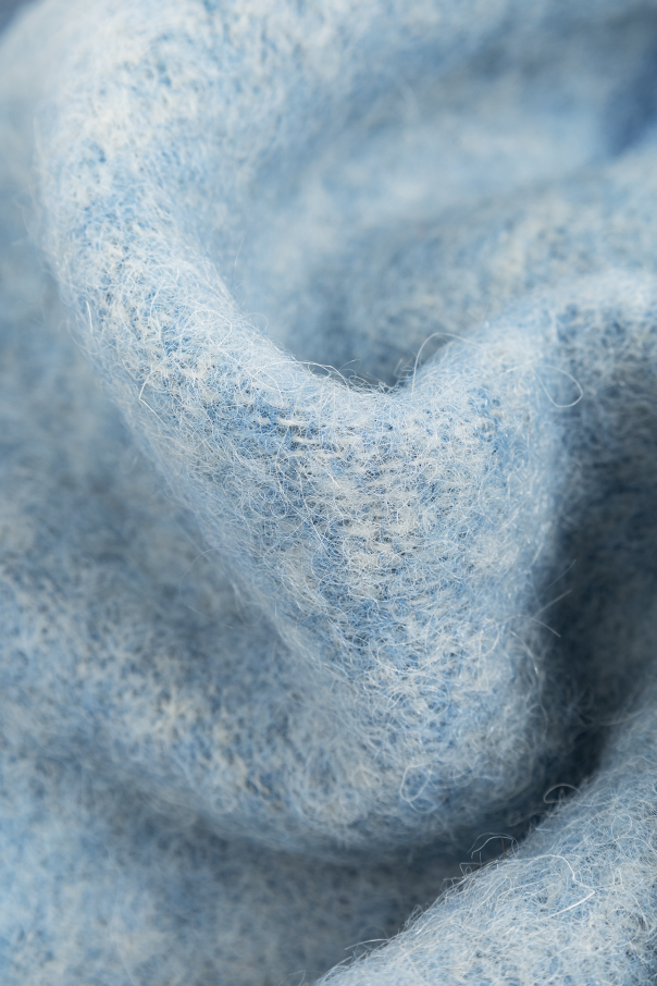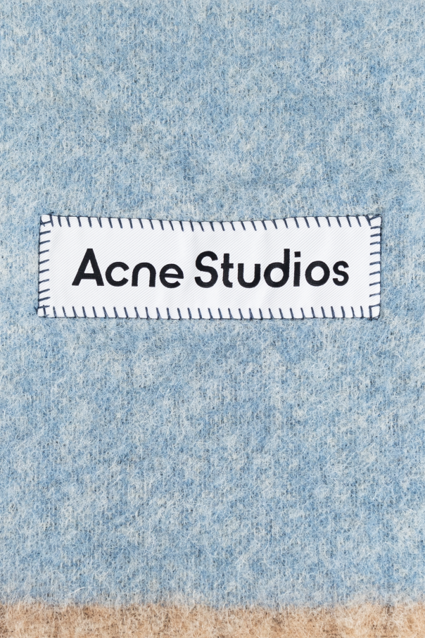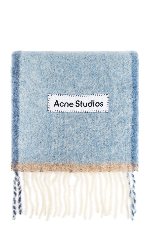 Introducing the Scarf with Logo from the exclusive collection by Acne Studios. This unisex accessory exemplifies the brand\'s dedication to practical minimalism and innovative design. Crafted from an exquisite blend of alpaca, wool, nylon, and mohair, this scarf envelops you in a cocoon of warmth and softness, ideal for cooler days. Draped in a dominant blue hue with a subtle mélange, it features the distinct \"Acne Studios\" logo affixed on a white patch at one end. The fringes, dipped in shades of white and beige, lend an elegant finish, showcasing the brand\'s commitment to refined craftsmanship. Why Choose This Product? Unisex design suitable for any wardrobe. Luxurious material blend for superior comfort. Signature logo for a touch of sophistication. Fringed ends for added elegance. Perfect for adding a chic element to any ensemble.
