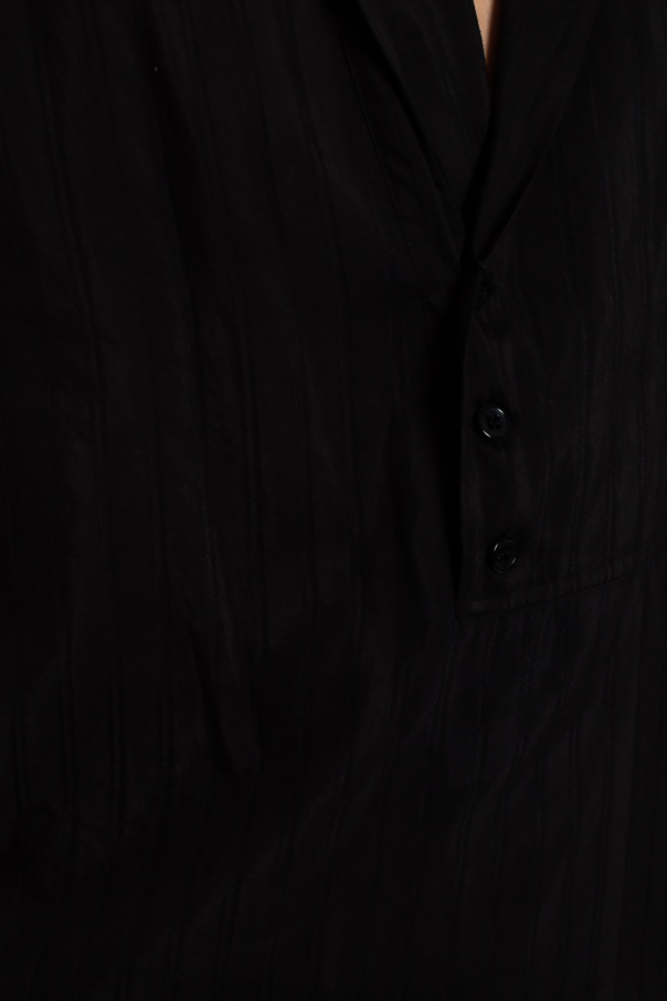 Black sleeveless shirt from Saint Laurent. Fastened with buttons, this design features a raw cut edge and a stripe pattern in black.