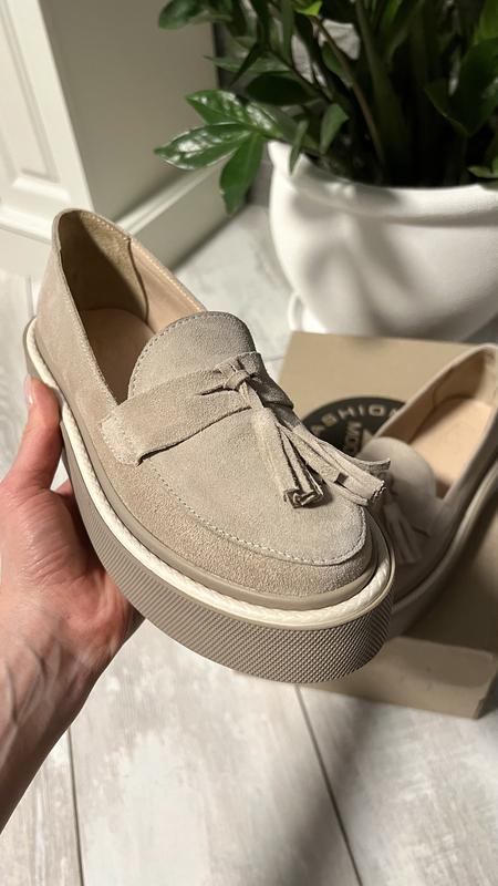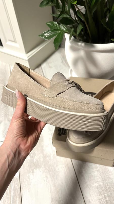 Лоферы из натуральной итальянской замши, очень красивый нежный цвет, стильные и практичные, не тяжелые Качественно отшитые Размер 37 (24см ) Новые. Купила для себя, пролет с размером без торгу Отправка наложенными платежами с подпиской за доставку или после полной оплаты