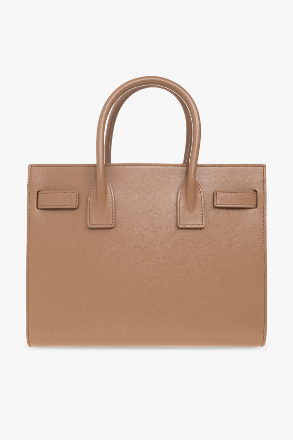 Beige ‘Sac De Jour Baby’ shoulder bag from Saint Laurent. Crafted from calf leather, this design features snap closures on the sides, an embossed gold-tone logo and a leather-encased padlock on the front, two half-round handles, a detachable and adjustable shoulder strap, gold-tone metal hardware and a zipped compartment inside.