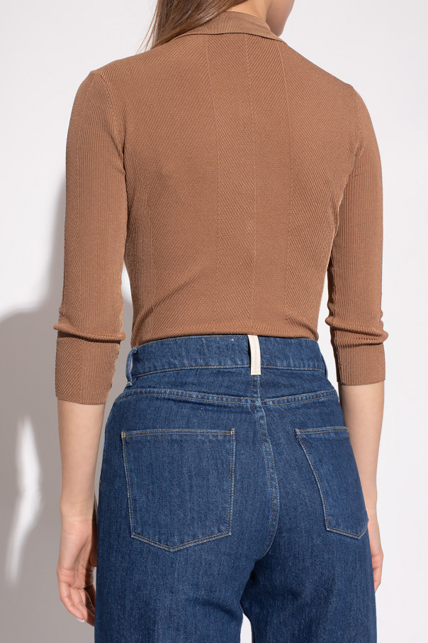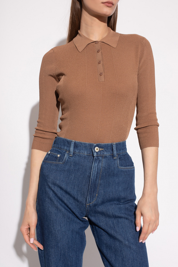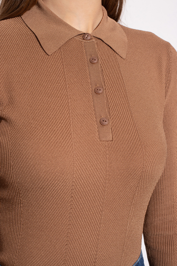 Brown ribbed polo shirt from Rag & Bone. This fitted design features button fastenings and long sleeves.
