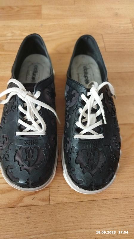 Очень удобные и интересные кроссовки. Комбинированные текстиль с резиной, непромокаемые. Идеальный вариант на осень. Размер 38-24.5см. В идеальном состоянии но есть ца\0рапина на подошве фото 6.
