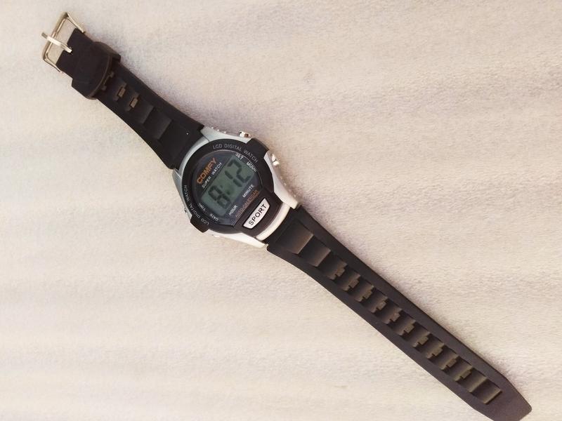 Часы показывают время: часы, минуты (секунды - по нажатии кнопки), дату и месяц. Есть режим при котором на индикаторе высвечивается время, через 2 сек дата и месяц. Корпус часов из ударопрочного пластика с задней крышкой из нержавеющей стали, прикрученной винтами. Ремешок из мягкого каучука с металлической застежкой. Ставлю новую батарейку перед отправкой. Особенности: -- часы имеют увеличенный ЖКИ индикатор с высотой цифры 10 мм Характеристики: Диаметр часов - 42 мм Толщина - 14 мм. Общая длина - 24 см Ширина ремешка - 18 мм. Батарейка - AG3 или аналогичная. Цена за 1 штуку.
