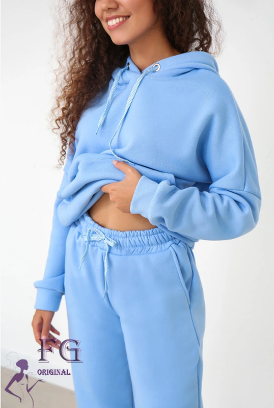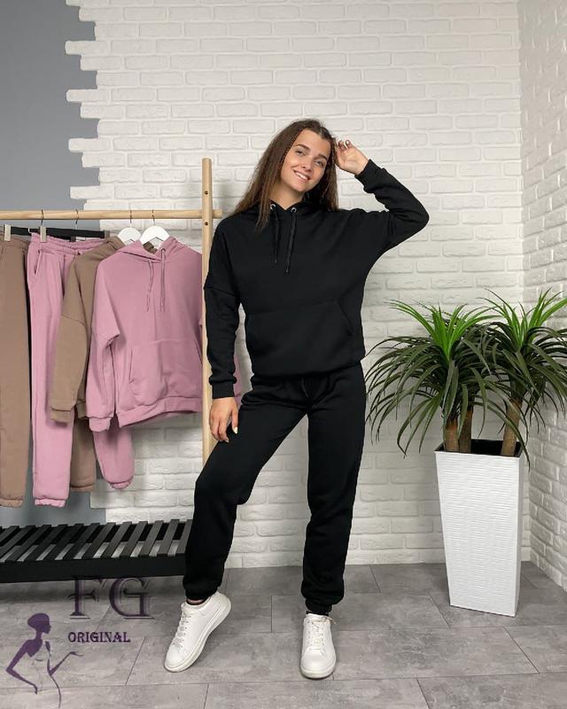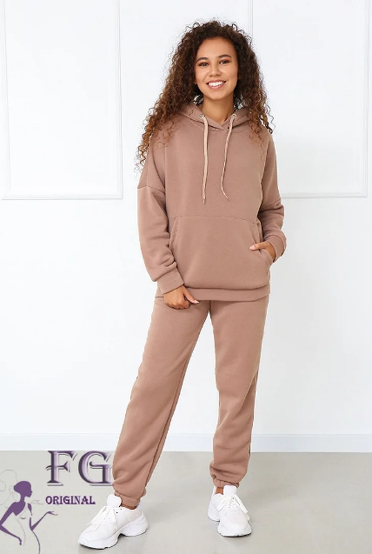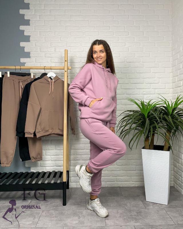 Є обмін і повернення, самовитягу немає! Відправки Укр. або Новою поштою (з Миколаєва) упродовж 3-5 днів. Накладений платіж у разі невеликого передоплаття. Довжина кофти по спинці: 63-65 см Довжина рукава (реглан): 70-72 см Довжина бічного шва: 101-102 см Довжина крокового шва: 75 см Матеріал: Тринитка на флісі Колір/розмір 42-44, 46-48, 50-52 Чорний Капучино Фрезовий Блакитний Зелений Спортивний костюм на флісі вирізняється такими особливостями: - кофта вільного крою з капюшоном і шнурками; - лінія плеча спущена; - довгі рукави з манжетами; - кофта-худі з великою кишенею-кенгуру спереду; - штани широкі, з двома кишенями; - зручна висока посадка; - пояс на гумці та шнурку; - штанини на гумці внизу. Стильний спортивний костюм оверсайз виготовлений зі щільного трикотажу тринитка. З вивороту матеріал утеплений м'яким флісом — начосом, який добре зберігає тепло під час носіння.