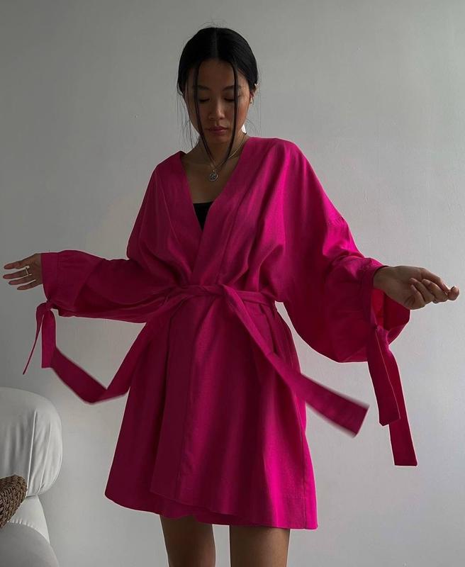 Любимая модель снова в наличии 🔥 Костюм( рубашка-кимоно + шорты) Модель 1074 ▪️Размер: 42-44, 46-48 ▪️Тканина: льон ▪️Цвет: малина, трава, электрик 🏷Цена 830 грн