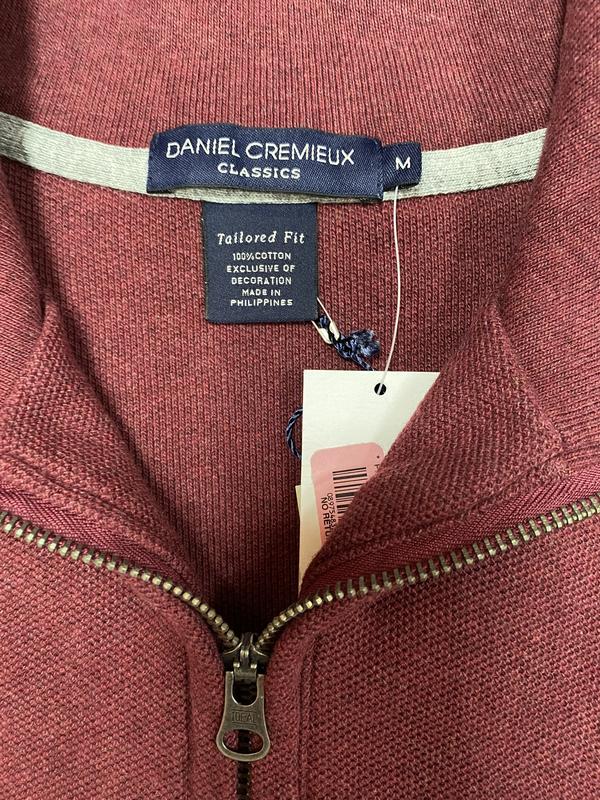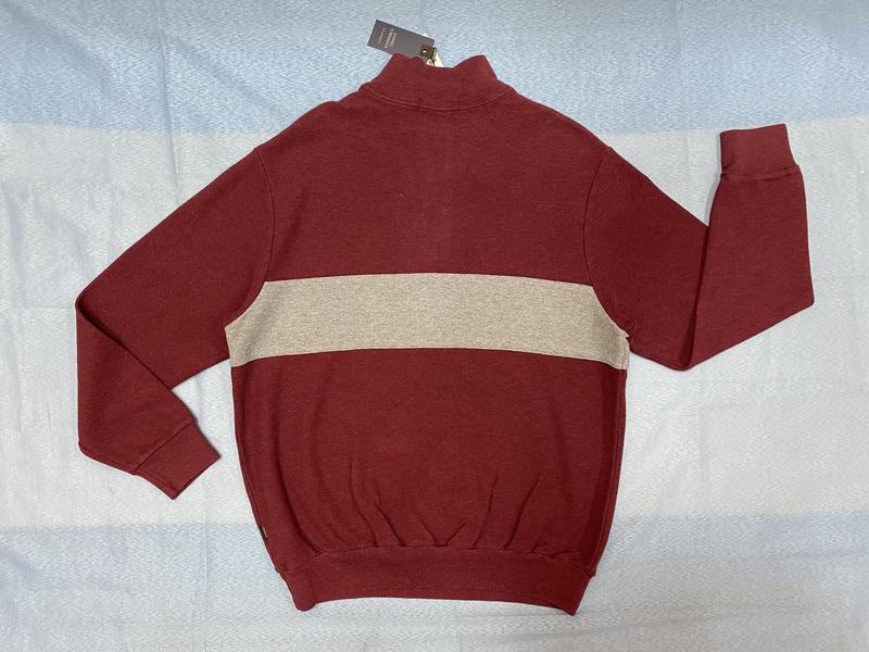 Кофта батник мужской на короткой молнии американо-французского бренда Daniel Cremieux, в вишневом цвете с серой широкой полоской, производство Филиппин, материал ( плотный, немного стрейчевый ) : 100% хлопок! Идет на размер больше! Размер: US ( М ) : ширина ( в комди ) - 58 см, длина (перед ) - 74 см, длина ( спина ) - 77 см, рукав - 65 см, рукав (от шва проймы ) - 51 см, плечи - 49 см. Длина спереди указана от края молнии, со спины - от края воротника, плечи - длина меж\0ду швами плеча!