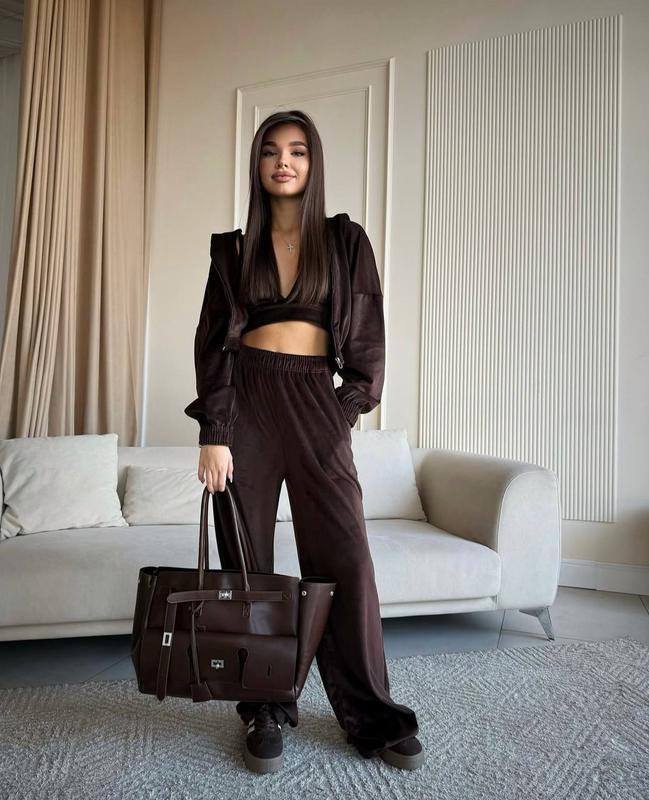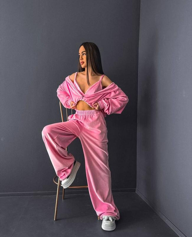 💫Велюровий костюм трійка 🌀Нові Кольори🌀 ✅Нові Розміри від XS до XXL 🛍️Нові Кольори: - сірий - білий - мокко - барбі - чорний - шоколад Зручна коротка кофта та широкі штани (низ штанів на затяжках) ➡️Мод. 1375 ➡️Розміри: 42-44; 46-48; 48-50 ➡️Тканина: Велюр Sport (Premium)