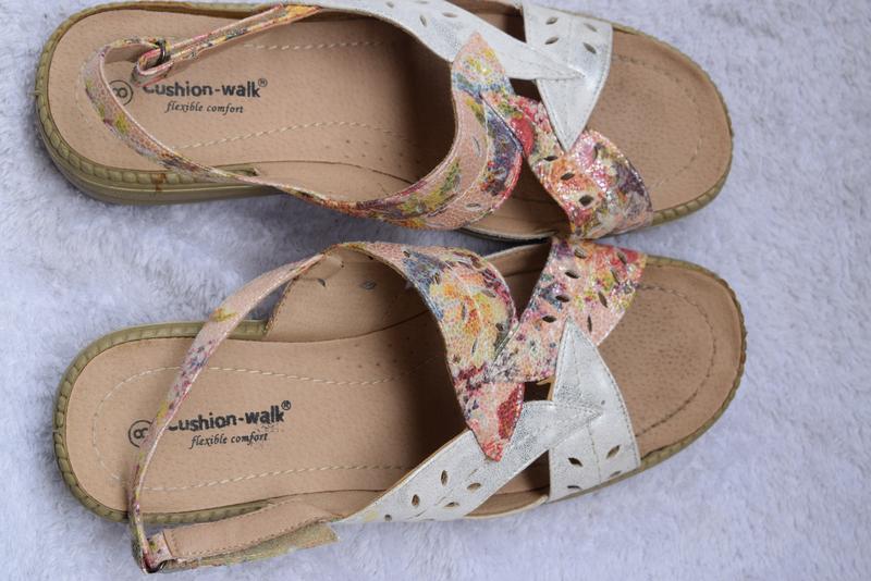 Продам невесомые легенькие летние туфли босоножки сандали британского бренда Cushion Walk размер указан 8 на наш размер 40 по стельке-26 см, мягенькие, подойдут на широкую стопу, сандали в идеальном состоянии.красивые. на пяточке ремешочек на липучке. Легенькие, кожаная стелька , на лето в самый раз. Cushion Walk flexible comfort Англия оригинал 100%. . Смотрите мои другие объявления. Отправлю по Украине.