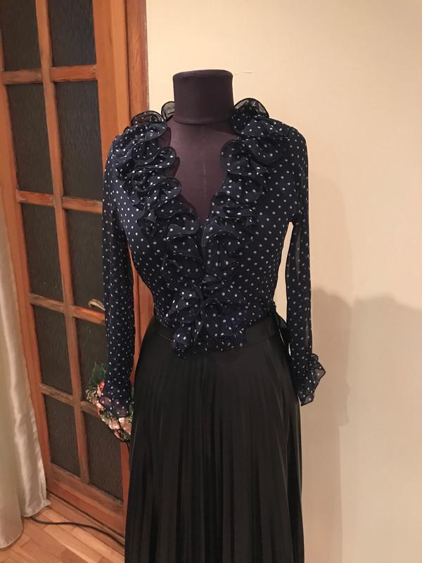 Красивая блуза темно-синего цвета очень красивого фасона . Ткань очень легкая
