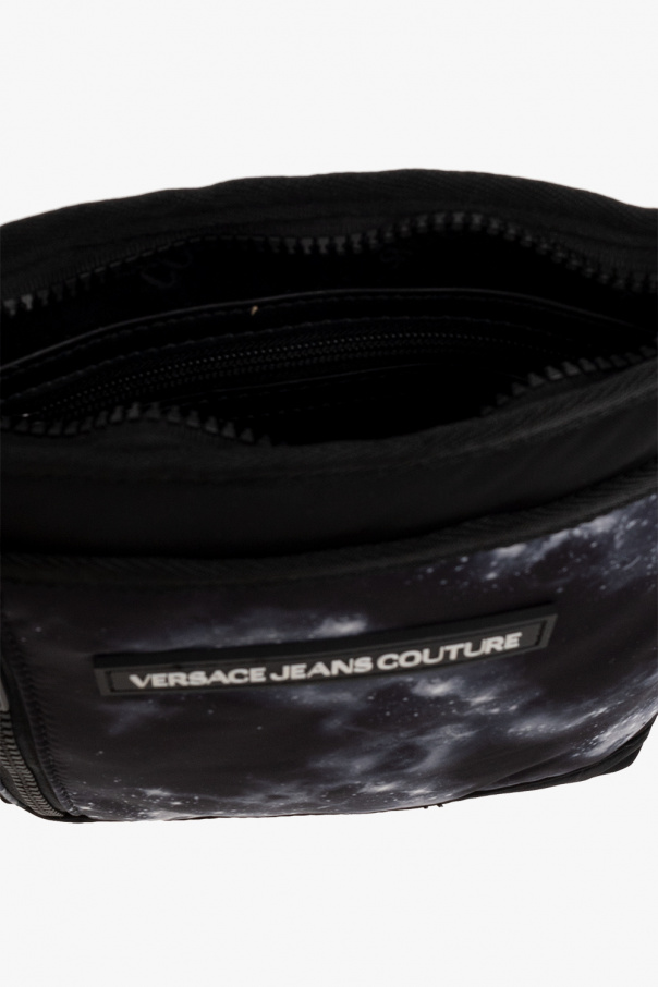 Black, grey and navy blue shoulder bag from Versace Jeans Couture. Emblazoned with a rubber logo patch and the brand\'s signature ‘Space Couture’ pattern, this design features a zip fastening, external slip pockets, an additional zip pocket on the front, a detachable and adjustable strap and one internal compartment with one slip pocket and one zip pocket.