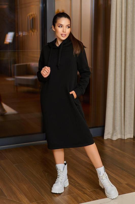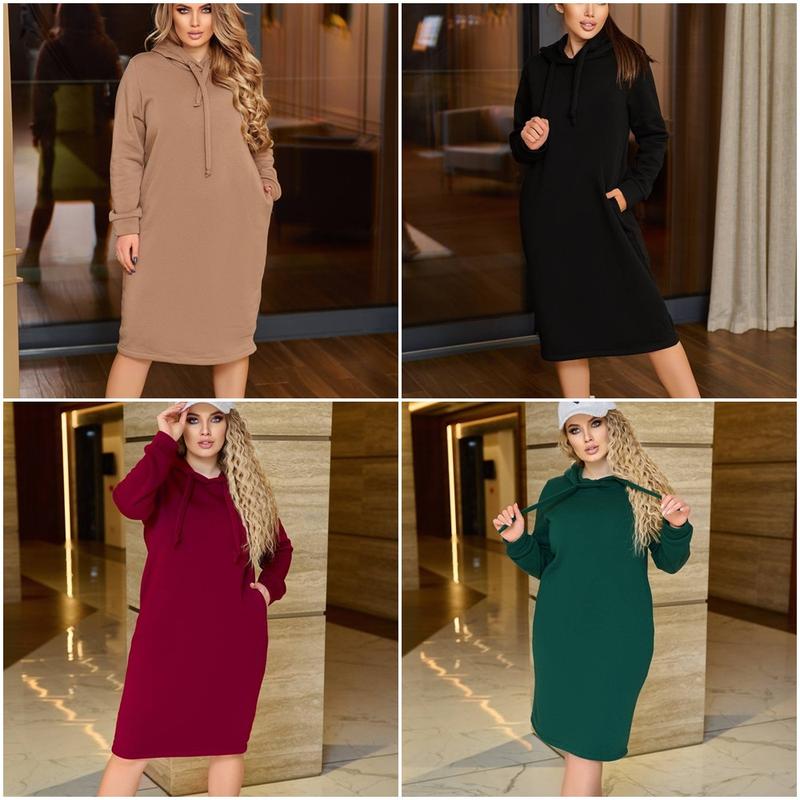 Модель:820 ПЛАТЬЕ Размер: 42-44; 46-48; 50-52; 54-56. Ткань: три нити на флисе отличного качества Цвет: черный; капучино. Ткань имеет среднюю растяжимость. Размер 42-44: ОГ 94 см. ОБ. 98 см. ДЛ 100 см. Размер 46-48: ОГ 102 см. ОБ.106 см. ДЛ 103 см. Размер 50-52: ОГ 110 см. ОБ.114 см. ДЛ 107см. Размер 54-56: ОГ 118 см. ОБ.122 см. ДЛ 108 см.