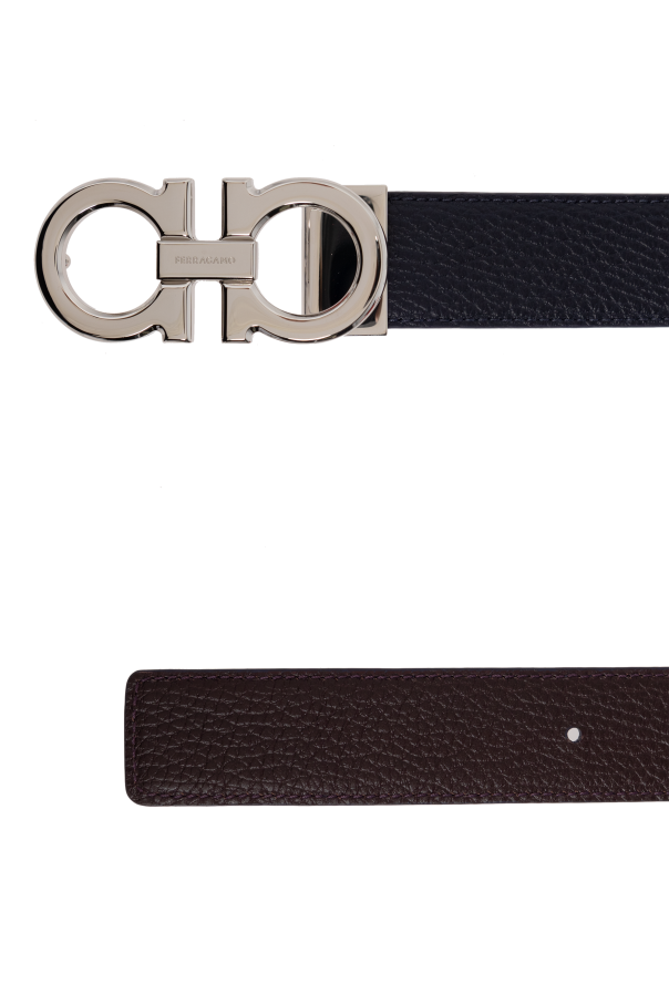 Introducing the reversible belt by the illustrious brand FERRAGAMO, a paragon of timeless elegance and functionality. Meticulously crafted from the finest leather, this belt boasts a sophisticated texture and is available in two classic hues: navy and brown. The belt features a distinctive silver-toned buckle, embellished with the brand\'s iconic logo, exuding an air of elegance. The buckle\'s modern, geometric design adds a contemporary flair to this classic accessory. Its dual-sided nature allows for versatile styling, seamlessly transitioning between formal and casual ensembles. Delicate stitching and smooth finishes underscore the exquisite craftsmanship and attention to detail synonymous with FERRAGAMO. Why Choose This Product? Crafted from high-quality leather for durability and style. Reversible design offers versatility in fashion choices. Iconic buckle with a modern geometric design. Perfect blend of luxury and practicality.