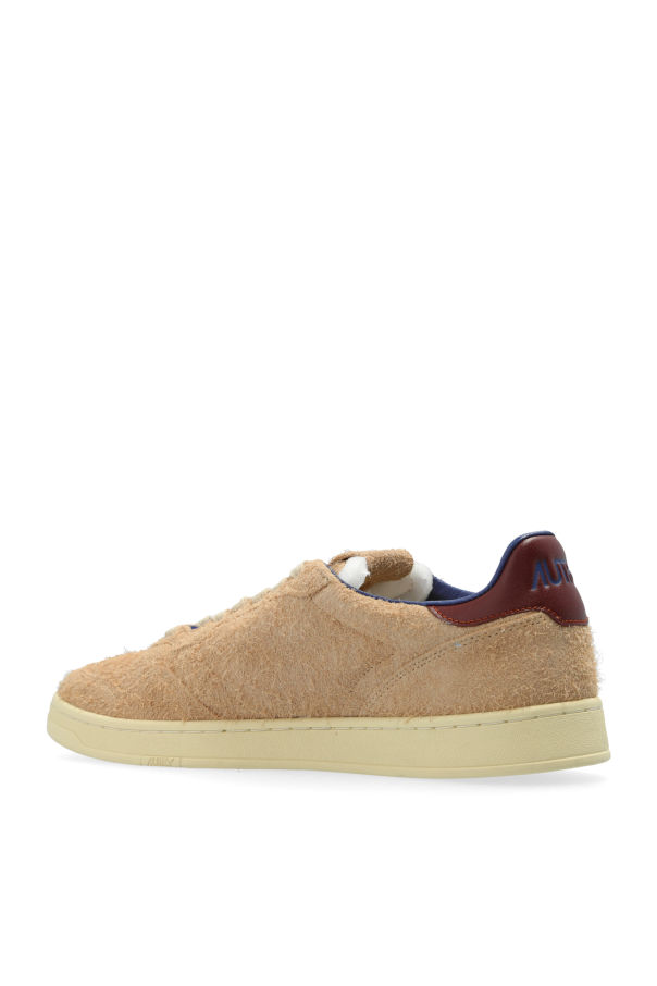 Introducing the \'Medalist\' Sneakers by Autry, a sartorial blend of sporty allure and sophisticated design. Crafted with an exquisite suede outer layer, these ankle-length men\'s sneakers exude elegance with their understated beige hue. The presence of the brand\'s flag logo near the stitches and a distinctive designer logo just above the sole signify its exclusive lineage. The cream-colored rubber sole offers a minimalist yet stylish foundation, complementing the shoe\'s overall aesthetic. A contrasting rear panel, likely crafted from premium leather, adds a touch of elegance and distinctiveness to the design. The shoe\'s laces, harmoniously colored to match the upper, ensure a cohesive and polished look. Inside, the insole bears the mark of the designer, a testament to the sneaker\'s luxury status. Why buy this product? Elegant suede construction for a refined appearance. Minimalist yet sophisticated design, suitable for both casual and smart-casual wear. Exclusive branding elements that underscore the shoe\'s designer pedigree. Contrasting materials add depth and allure, making the \'Medalist\' sneakers a unique addition to any wardrobe.