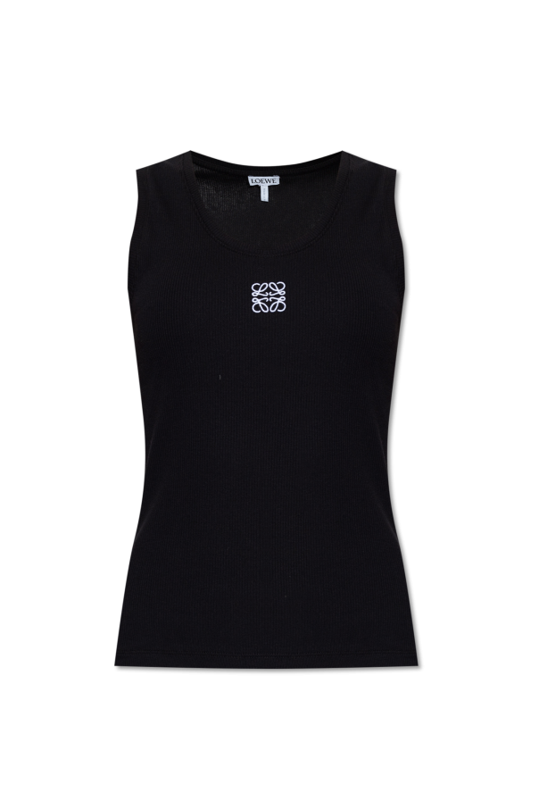 Black tank top from Loewe. Made of cotton with a form-fitting silhouette, this style features a round neck and white logo embroidery on the front.