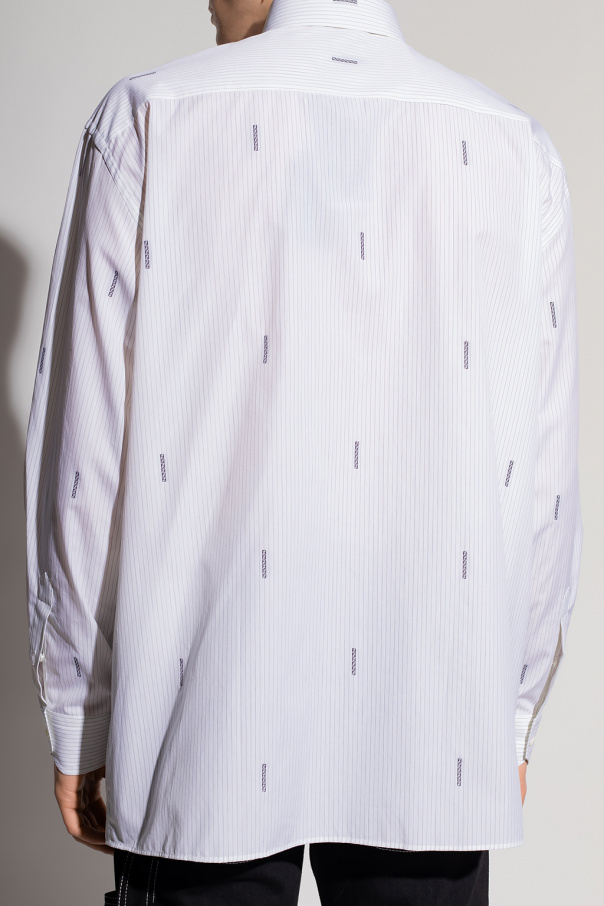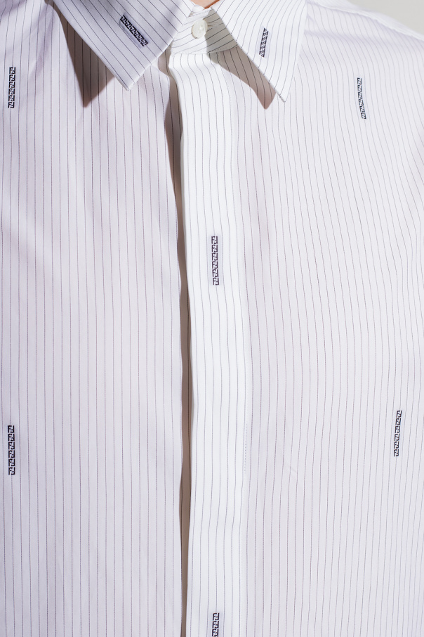 White shirt from Fendi. Made of cotton, this garment features buttons with a concealed placket, black stripe pattern, logo embroidery and long sleeves with button cuffs.