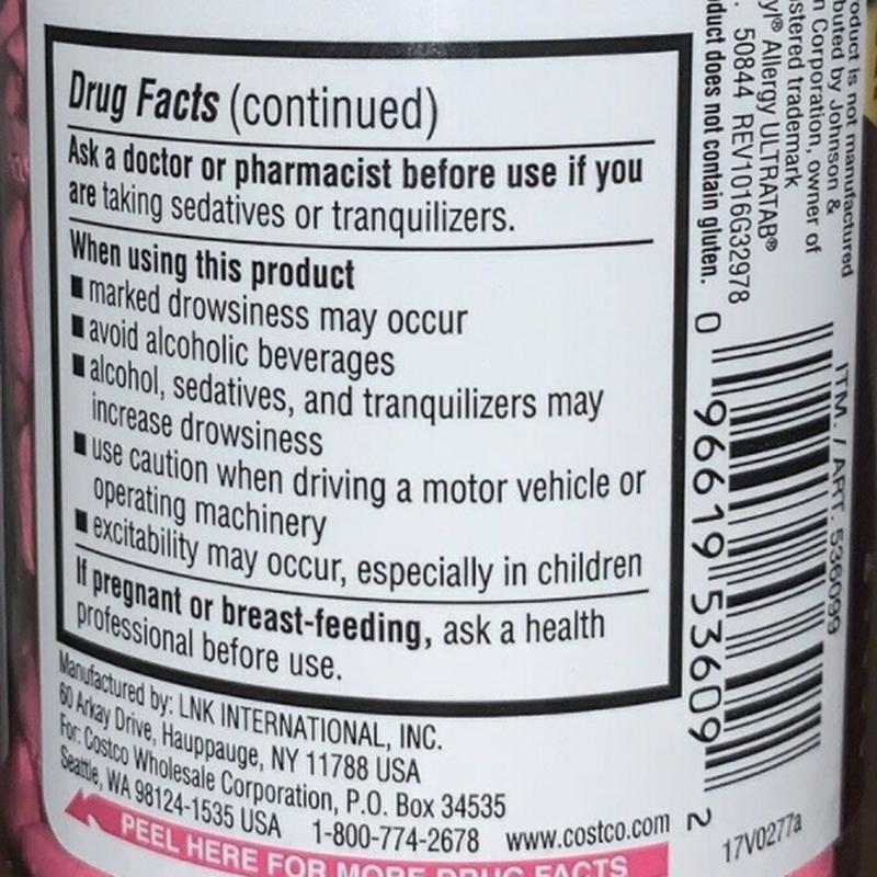Безрецептурный препарат от аллергии, астмы или синусита Kirkland Signature Allergy Medicine Diphenhydramine HCI 25 Mg, 600 Minitabs - (США). Аллергия это серьезная проблема для миллионов людей по всему миру. Это очень распространенная проблема, которая постоянно беспокоит многих людей, особенно при ухудшении погодных условий. Она может быть вызвана различными факторами, такими как пыль, пищевые продукты, животные, пыльца и другие. Симптомы аллергии могут быть слишком дискомфортными, включая заложенность носа, кашель, сыпь, зуд, слезотечение и другие. Чтобы избежать этого, люди ищут способы, которые могут помочь им снизить симптомы аллергии и улучшить свое самочувствие. Аллергия на лице может стать настоящей проблемой в обиходе, ограничивая способность людей заниматься повседневными делами и снижая качество жизни. Для того, чтобы помочь людям, страдающим различными видами аллергии на коже, был разработан Kirkland Signature Allergy Medicine - таблетки, обладающие антиаллергическим действием. Это натуральный препарат, содержащий комбинацию природных составляющих, способствующих улучшению здоровья. Препарат от аллергии Kirkland Signature Allergy Medicine помогает уменьшить симптомы аллергии, включая кашель, зуд, заложенность носа и слезотечение. Лекарство от аллергии обеспечивает успокаивающее действие, уменьшая риск дальнейшего развития аллергии. Kirkland Signature Allergy Medicine таблетки от аллергии включает в себя природные составляющие, такие как экстракты травы стада, корней лопуха, корней одуванчика, листьев крапивы жалкой, цветков ромашки и другие. Экстракт стада содержит флавоноиды, танины, каротиноиды и другие полезные вещества. Обладает противовоспалительными свойствами и может помочь в лечении некоторых кожных заболеваний. Экстракт корней лопуха содержит витамины А, С, Е, инулин, а также фитонциды и другие полезные вещества. Он известен своими противоаллергическими и антиоксидантными свойствами, а также может оказаться полезным для улучшения здоровья всего организма. Противоаллергические таблетки Kirkland Signature Allergy Medicine содержат также другие важные составляющие, такие как экстракт корней одуванчика и экстракт цветков ромашки, которые имеют антигистаминное действие и помогают уменьшить симптомы аллергии. Kirkland Signature Allergy Medicine может быть полезен людям с любым типом аллергии, включая аллергию на пыльцу, животных, пищевые продукты и другие. Этот препарат не содержит вредных химических веществ и не имеет побочных эффектов. Его можно принимать как в профилактических целях, так и для лечения симптомов аллергии. Благодаря своему натуральному составу и эффективности, Kirkland Signature Allergy Medicine может быть хорошим решением. Он помогает снизить симптомы аллергии, поддерживает здоровье иммунной системы и обеспечивает успокаивающее действие на организм. Если вы ищете эффективный и естественный способ улучшить здоровье и уменьшить симптомы аллергии, Kirkland Signature Allergy Medicine именно то, что вам нужно. СВОЙСТВА ПРЕПАРАТА Kirkland Signature Allergy Medicine Экстракт травы стада содержит много флавоноидов, оказывающих противовоспалительное действие, а также аскорбиновую кислоту, повышающую иммунитет. Экстракт корней лопуха содержит инулин, фенольные кислоты и полиацетиленовые соединения, которые обладают противовоспалительными свойствами и могут помочь уменьшить аллергическую реакцию. Экстракт корней одуванчика соде