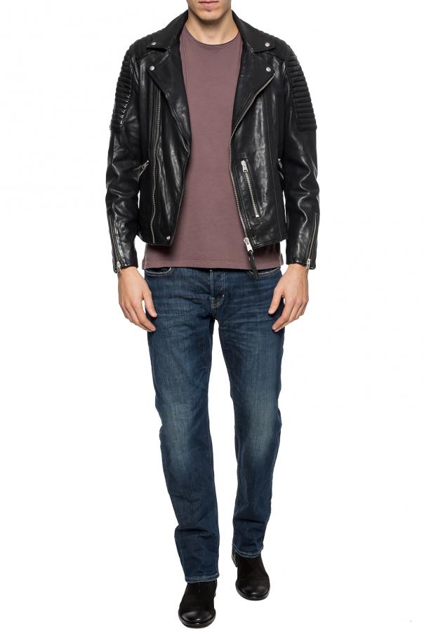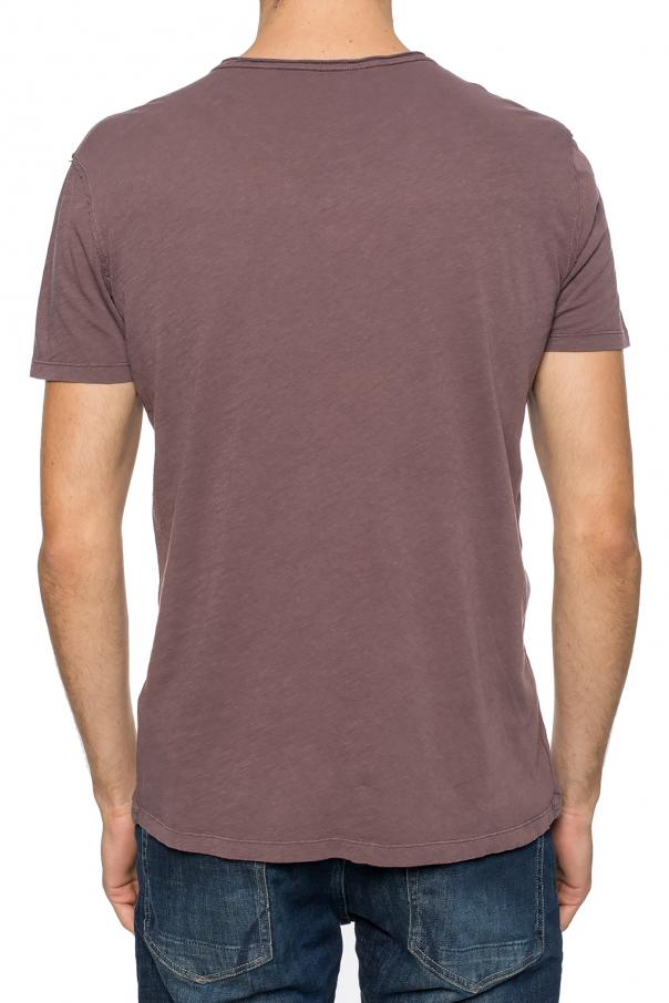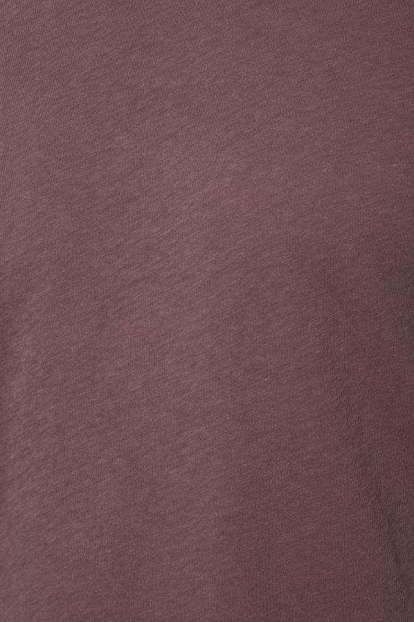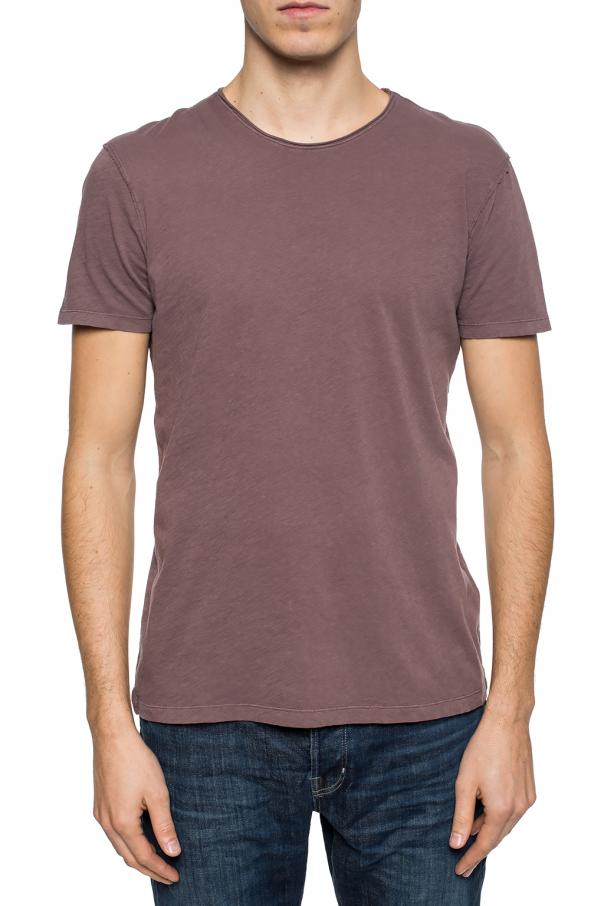 Brown \'Figure\' T-shirt with a raw edge from AllSaints. Made of cotton. Round neck. Short sleeves.