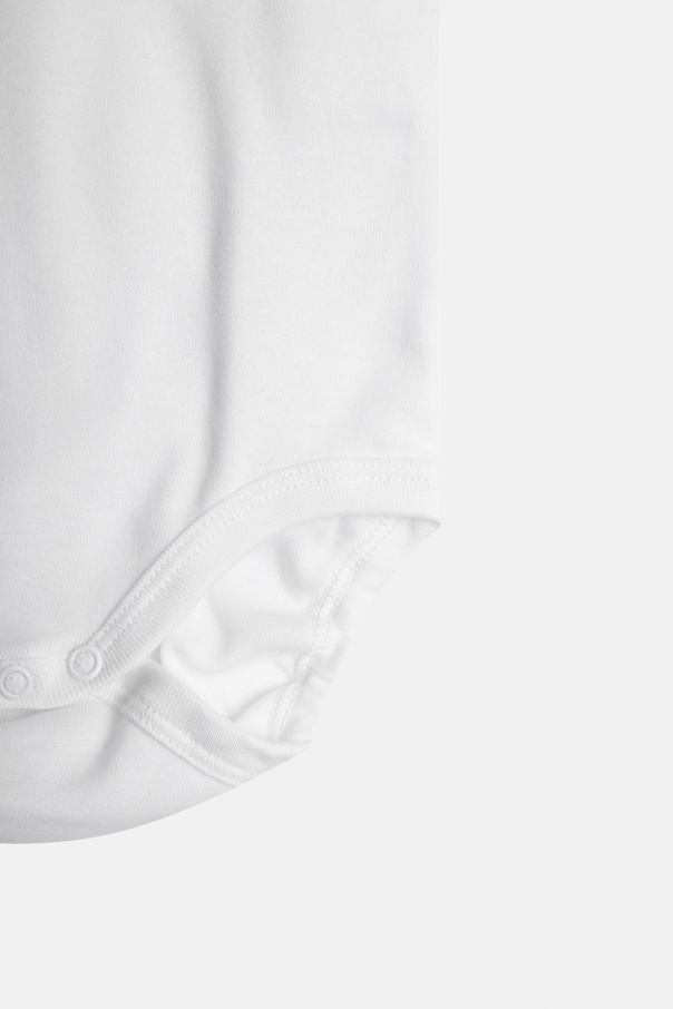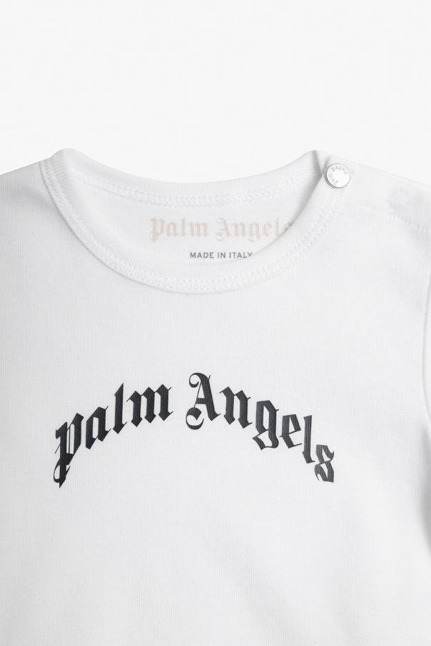 Body 3-pack in white, navy and light blue from Palm Angels Kids. Made of organic cotton, this short sleeve design features a round neck with snap fastenings as well as printed and embroidered logo details.