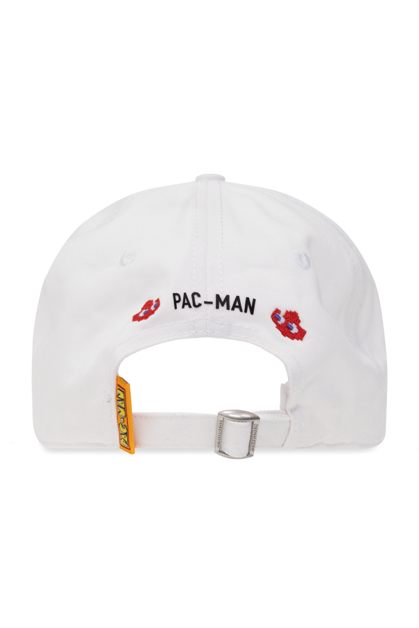 White baseball cap from Dsquared2 x PAC-MAN™. Made of cotton, this item adjusts via a back buckle strap and showcases a logo print and colourful graphic embroidery.