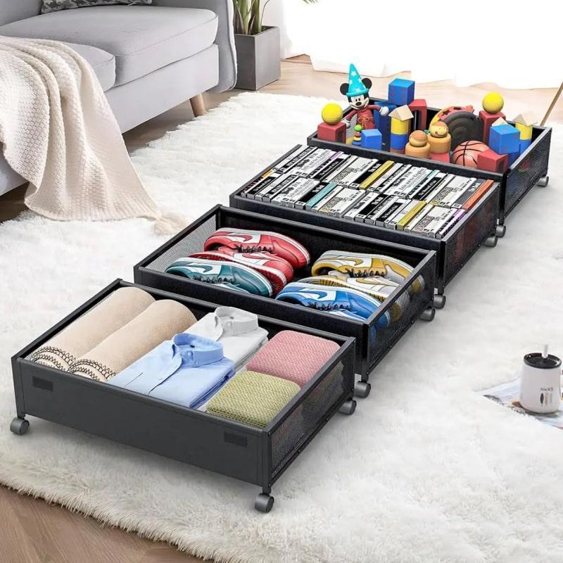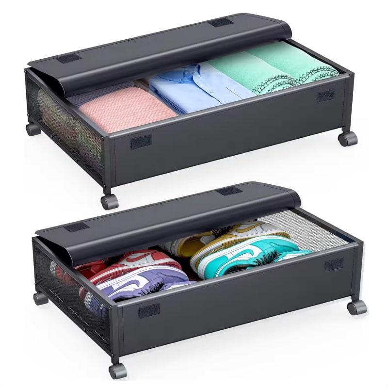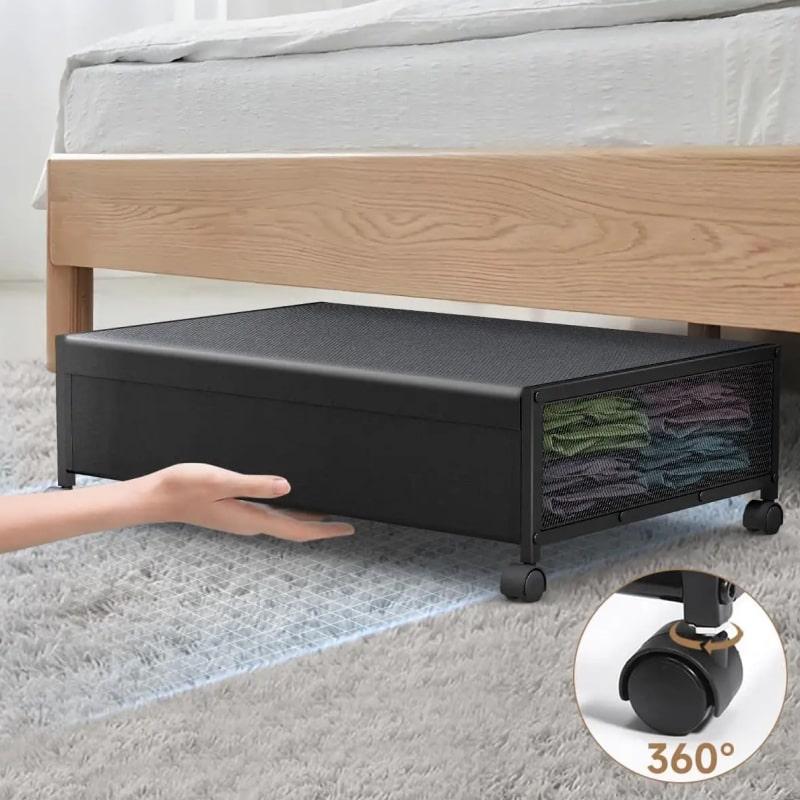 Універсальний підліжковий органайзер Використовуйте простір під ліжком з користю. Органайзер стане практичним місцем для зберігання речей. Ідеальний вибір для прибирання безладу та організації вашого простору, ці контейнери для зберігання є водночас міцними та заощаджують місце Легко переміщається Коліщатка дозволяють легко висунути органайзер для зберігання для швидкого доступу до ваших речей, а вранці заховати назад, щоб заощадити місце на підлозі Міцна конструкція Монолітна конструкція органайзера забезпечується високою якістю збірки та металу, що дозволить витримати до 35 кг навантаження Компактний органайзер з великою місткістю Один органайзер забезпечить місткість в 35 л при габаритах: 61 x 39 x 14 см Приліжковий комод на коліщатках можна легко скласти, щоб отримати компактний розмір 9,4 х 39,9 х 29 см. ** Простір між дном ліжка і підлогою повинен бути не менше 14 см, щоб контейнер помістився