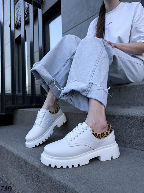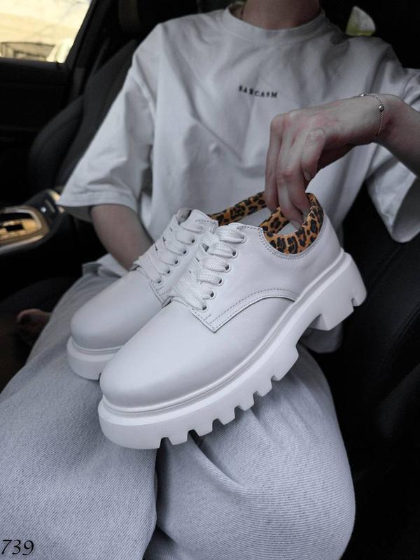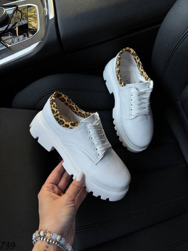 Код 739 Туфлі, цвет: Белый, материал: Натуральная Кожа+натуральная замша( пяточка) внутри: натуральная кожа высота от пятки 6 см высота сзада 4,5 см спереди 2,5 см очень легкие производитель Украина с 36 по 40 36=23,5 см 37=24 см 38=24,5 см 39=25,5 см 40=26 см Доступные под заказ с 36 по 40 Отшив 7/21 рабочих дней Розмеб 2250 грн