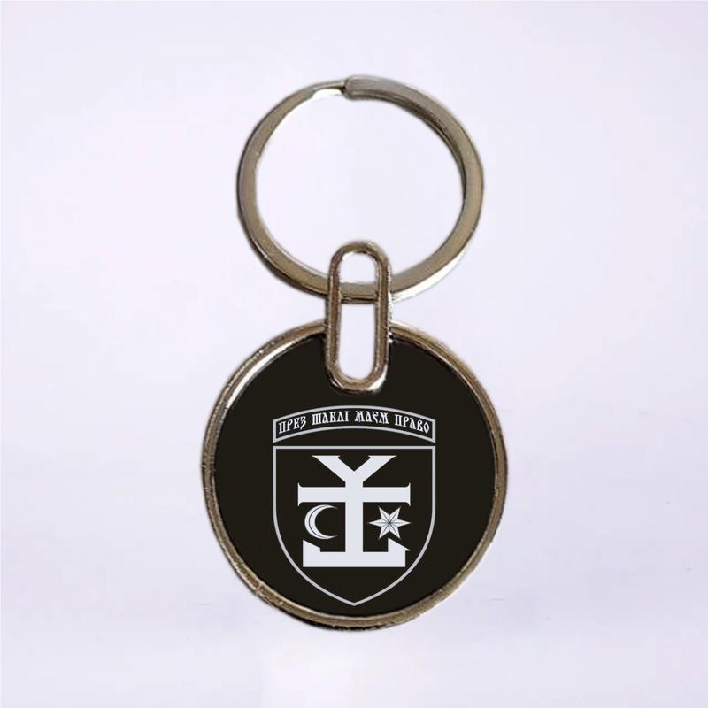 Размер брелка 71*32 мм. Брелок изготовлен из металла. Сердцевина брелка нержавеющая сталь с покрытием.