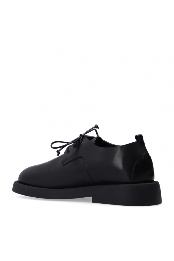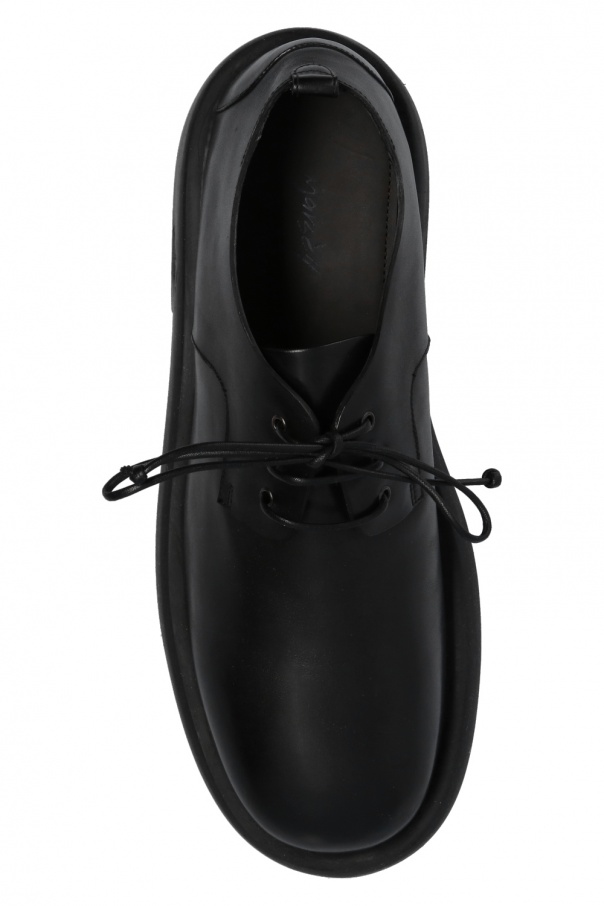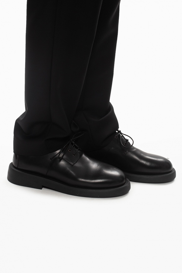 Black derby shoes from Marsell. Crafted from leather, this lace-up pair sits on a black rubber sole and features an almond-shaped toe.