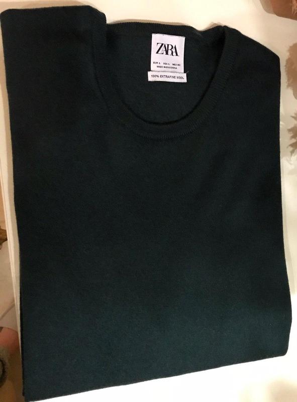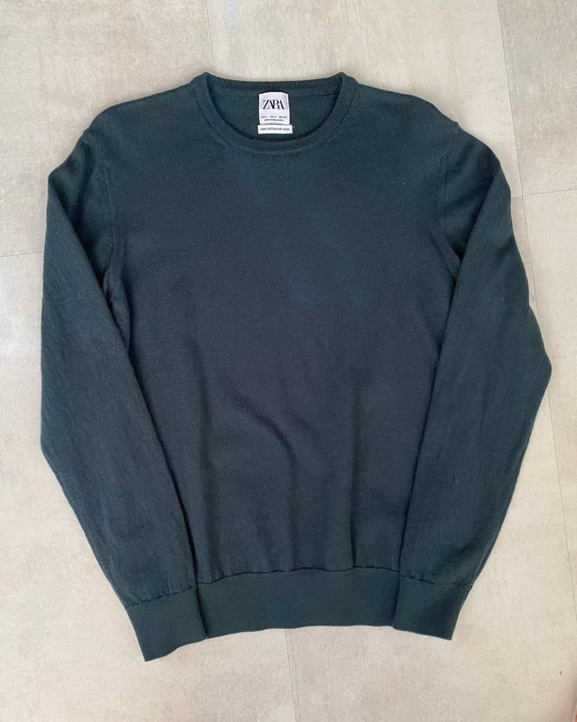 Свитер Зелёный мужской - 100% шерсть - ZARA - 36-38р. (S) Состояние идеальное, без изьянов и дефектов. Свитер мягкий, удобный, тёплый. Цвет в тренде. Дополнительные фото по желанию. Фото сделаны с разным освещением. * На бирке указано L - но он маломерит. ПОГ - 46/60см. ПОТ - 46/60см. ПОБ - 39/58см. Плечи/плечо - 46см./15см. Длина - 62см. Рукав - 63см. Состав: 100% шерсть Доставка Новой почтой наложка