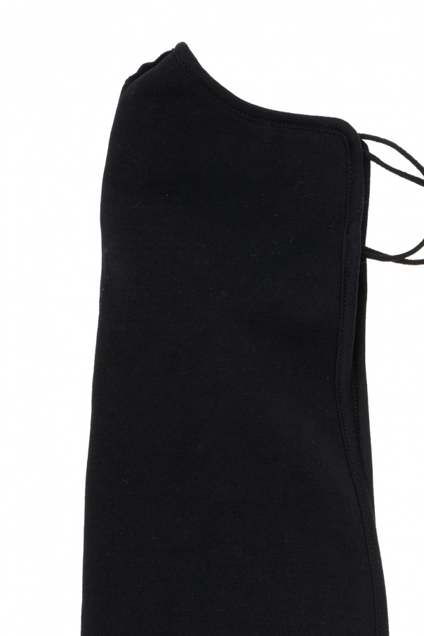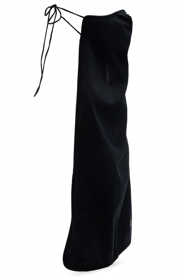 Black long face mask from Rick Owens x Champion. Emblazoned with a logo patch, this item features a self-tie fastening at the back.