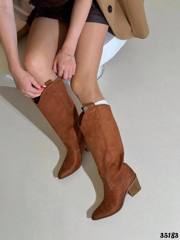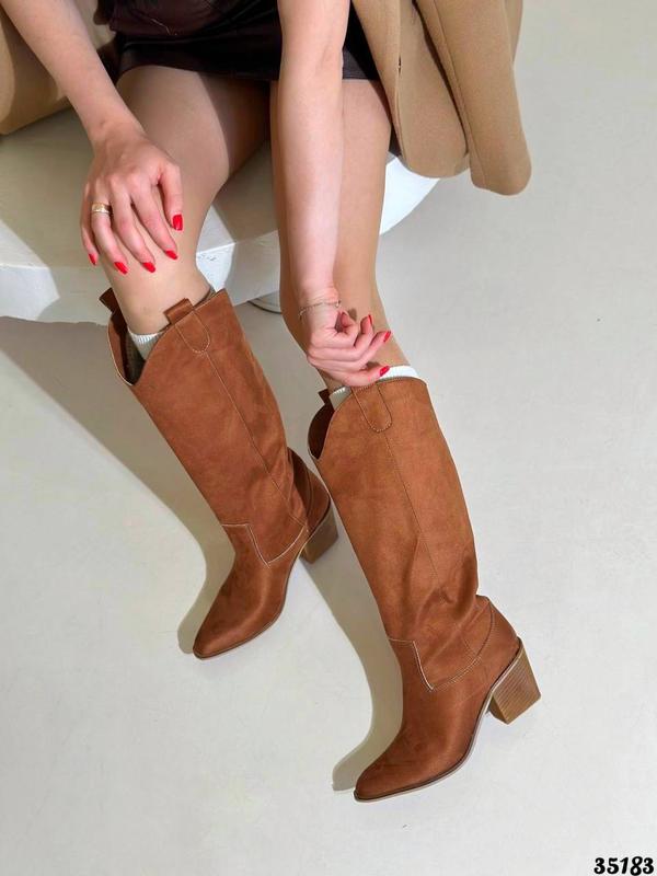 ▪️Для заказу пишіть в чат «написати продавцю» ▪️Наложка Нова Пошта по передоплаті 200 грн Сезонність:демісезонні, утеплені флісом по довжині Колір: рижі. Матеріал: еко замш ▪️Висота каблуку: 7 см ▪️Висота від пʼяти: 37 см Розмірна сітка : 37-24; 38-24,5; 39-25,5; 40-26 см