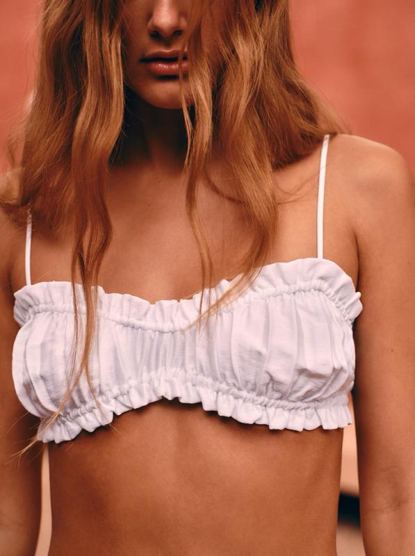 білий атласний топ зі зборками бренду ZARA у розмірі S