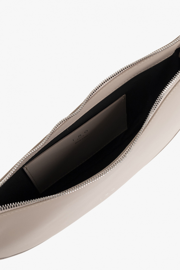 Beige shoulder bag from Iro. Crafted from calf leather, this design secures with a zipper and showcases an embossed logo pattern, an adjustable shoulder strap, silver-tone metal hardware and one internal compartment with a slip pocket.