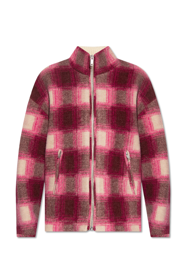 Pink and cream \'Giovany\' jacket from Marant Etoile. Embellished with a check pattern, this style fastens with a zip and features a wool-blend standing collar, two zip pockets and long sleeves.