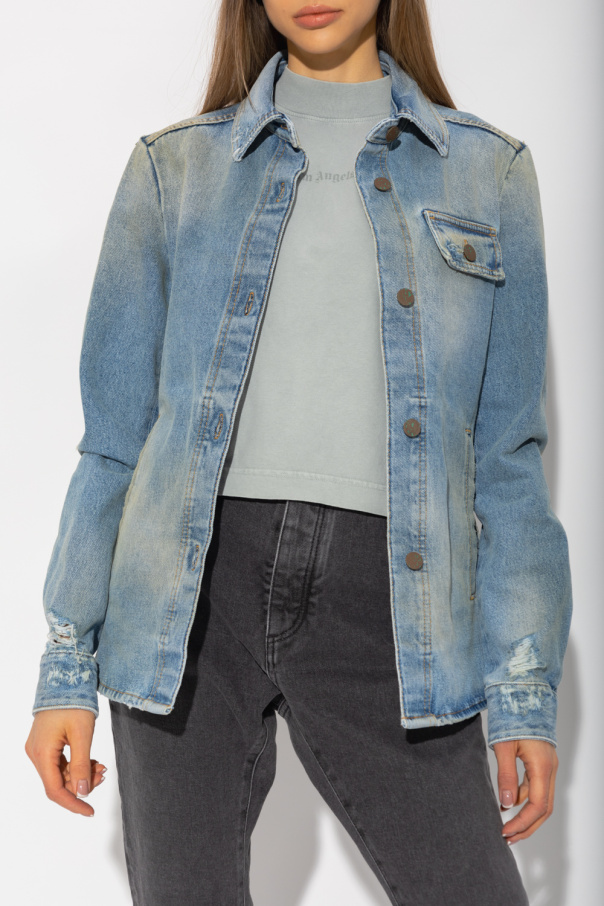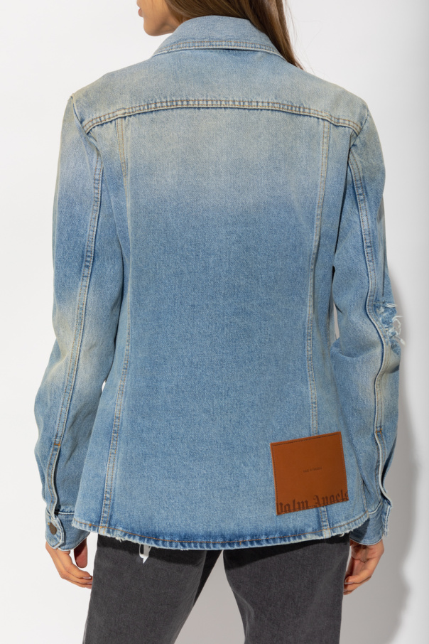 Blue denim jacket with a vintage effect from Palm Angels. Fastened with buttons, this garment features a flap pocket, two slip pockets and long sleeves with buttoned cuffs.