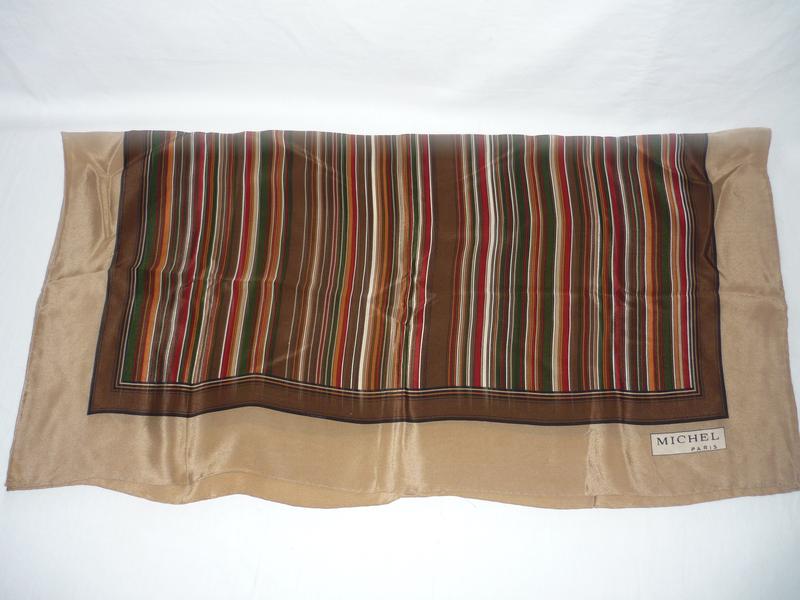 Michel Paris - новая, без признаков пользования, без этикеток. Качественный, яркий платок. Великолепное сочетание цветов. Шов ручной роуль. Бирки со составом нет. 100% натуральный шелк. Замеры: 76 * 78 см.