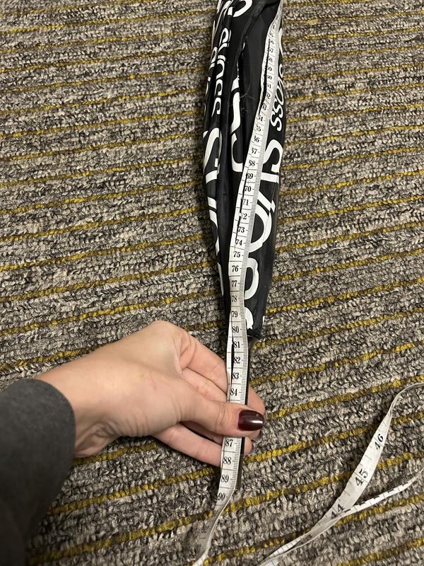 На последнем фото видно, что в левом верхнем углу спица чуточку загнута. Поэтому цена снижена на зонтик. Больше дефектов нет Высота зонта - 89 см Ширина в раскрытом виде (самое широкое место) - 90 см Ширина в сложенном виде - 10 см в ручки, 5.5 см - тело зонта.