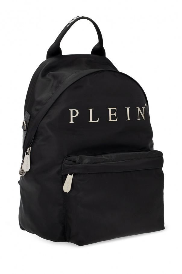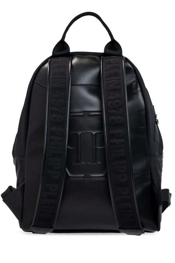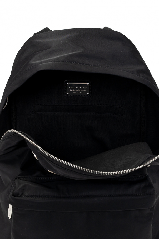 Black backpack from Philipp Plein. Fastened with a zip, this design features a logo appliqué, half-round handle, front zip pocket, adjustable straps, silver-tone metal hardware and one internal compartment with one slip pocket.