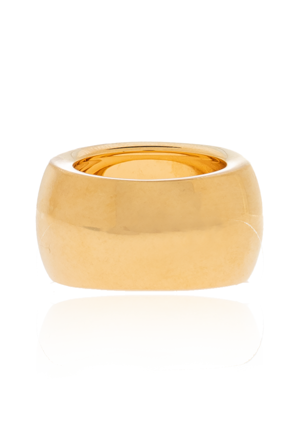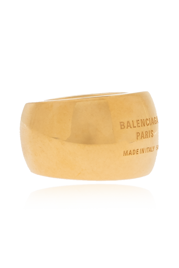 Introducing the epitome of modern elegance and minimalistic design — the Balenciaga Paris Mosiężny Pierścień. Crafted from 100% high-quality brass, this ring exudes a refined golden hue that captivates and enchants. Its wide, flat surface, with gently rounded edges, presents a contemporary and sleek silhouette that is at once striking and understated. The exterior of the ring proudly displays meticulous engravings of \"BALENCIAGA PARIS\" and \"MADE IN ITALY\" alongside the size designation \"54\", signifying its prestigious brand heritage and the craftsmanship excellence of Italian jewelry making. These details not only serve as a testament to the ring\'s authenticity but also enhance its aesthetic appeal, making it a distinctive piece in any luxury collection. Its solid construction suggests a piece of enduring quality, while the polished brass finish offers a subtle sheen that complements its robust form. Whether showcased alone or adorning the finger, this Balenciaga ring stands as a symbol of modern luxury and refined taste. Why Purchase This Product? Exclusive Design: A unique blend of modern minimalism and luxury, marked by the distinguished Balenciaga signature. Premium Materials: Crafted from the finest brass, ensuring durability and a lasting golden luster. Exceptional Craftsmanship: Impeccably engraved details and a polished finish reflect the high standards of Italian jewelry making. Brand Authenticity: Engraved logos and production marks underscore the ring\'s status as a genuine Balenciaga creation.