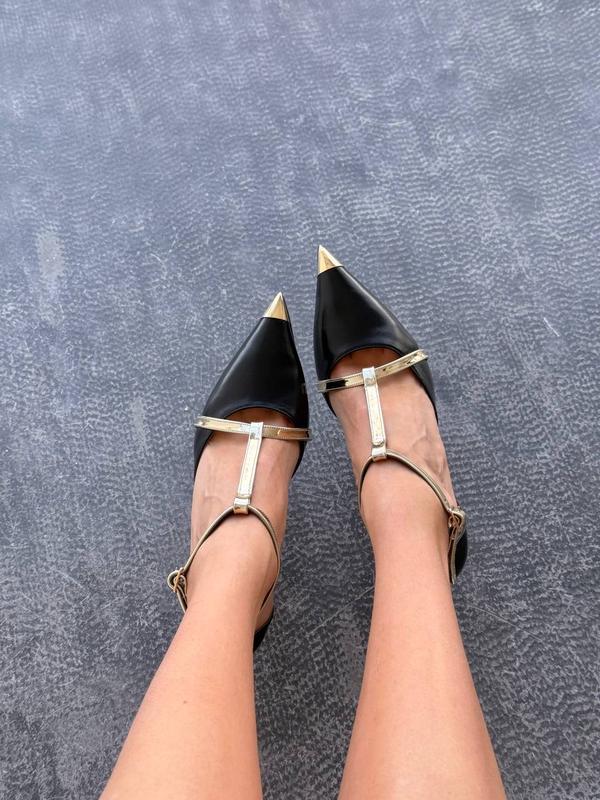 ▫️Новинка в наявності▫️ Код 11926 Витончені босоніжки Колір: ЧОРНИЙ + ЗОЛОТИЙ Матеріал: екошкіра+еколак преміальної якості Всередині: екошкірпідклад Фіксуються ремінцем Підбор: 9 см Виробництво - фабрична Туреччина 36= 23,5 см 37= 24 см 38= 24,5 см 39= 25,5 см 40= 26 см Вага 36 р= 340 г