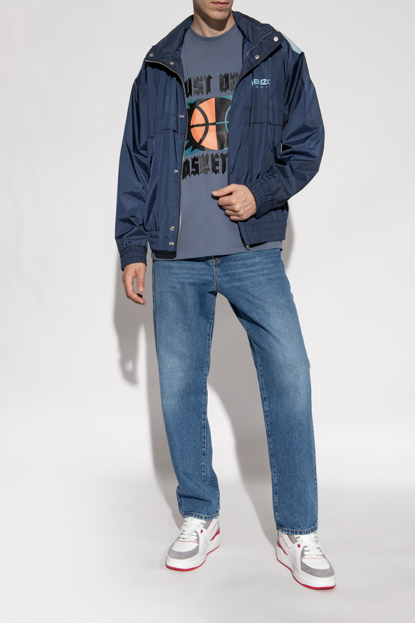 White, grey and red ‘Luxury JD3’ sneakers from Just Don. Crafted from leather and fabric, this lace-up pair features perforations, logo patch, neoprene sock and rubber sole in red and white.