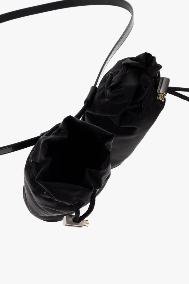 Black belt bag from FERRAGAMO. Made of recycled ECONYL® and leather, this design features two pouches with drawstrings and a metal logo-engraved logo, adjustable buckle belt and silver-tone metal hardware.