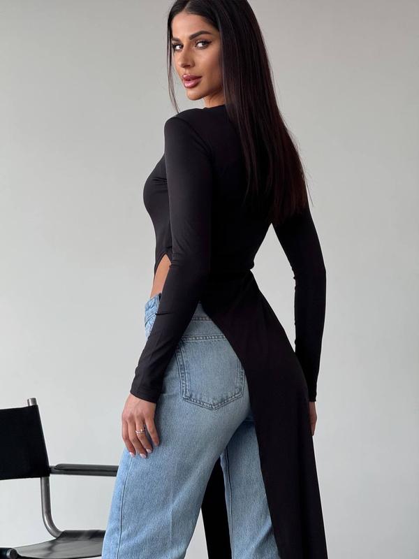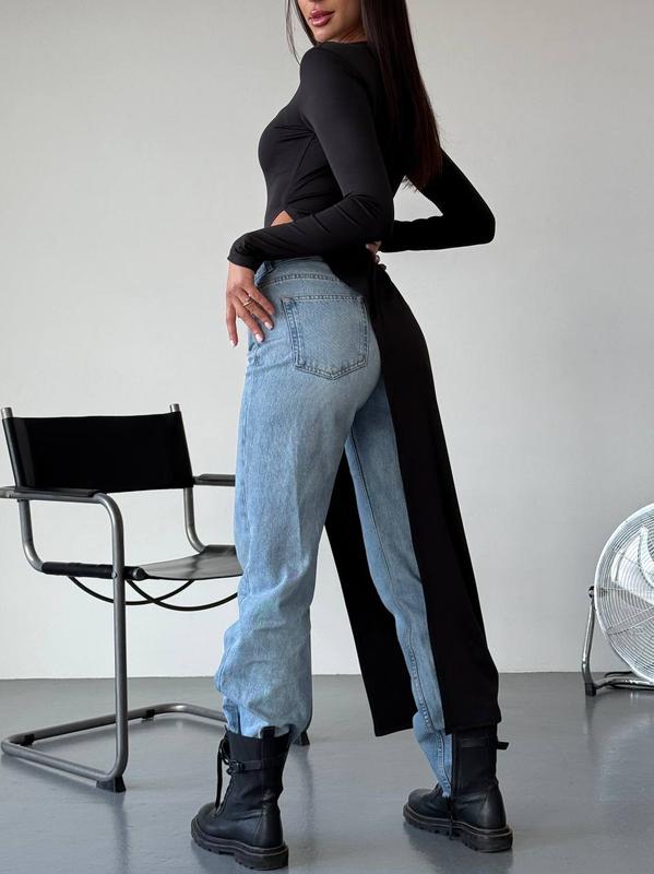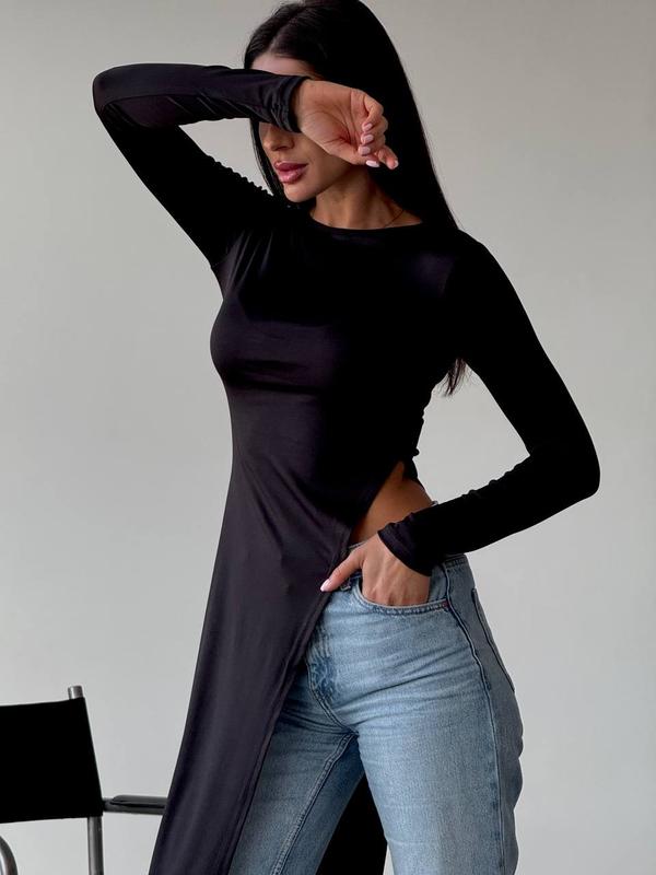 Плотная ткань, мягкая, хорошо тянется. Сделает актуальным и современным любой образ Материал: микродайвинг Цвет: черный Размеры: S-L(Универсал) Параметры: - Объем груди 75-95см - Объем талии 58-68см - Длина рукава 63см Длина: коротка частина 34см длинная часть 137см Ткань очень хорошо тянется Мод2039