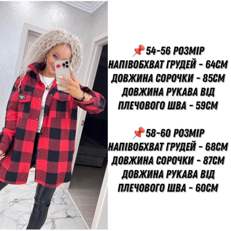 Теплая женская рубашка Оверсайз в батальных размерах SIZE + Сыграет в прохладные дни, идеальный вариант под джинсы, брюки, джоггеры. Застежки - кнопки. Рабочие карманы. Треугольная нашивка на кармане дополняет ваш стиль . Материал: шерсть клетка Размеры: 54-56, 58-60 ЦИНА 870 грн Для заказа задайте в привод уведомления 💌 Открытка по Новой почте по полной или частичной оплате с подпиской 200 грн. Укр. по почте по полной оплате. Обработка и отправка заказа в течение 3 дней