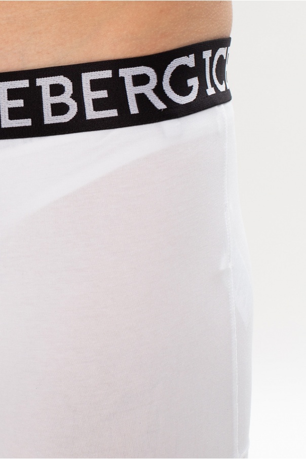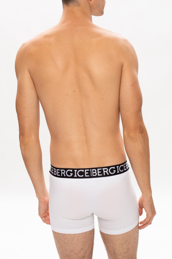 White boxers two-pack from Iceberg. Crafted from cotton, these pairs are finished with a black elasticated waistband embroidered with white logo of the label.