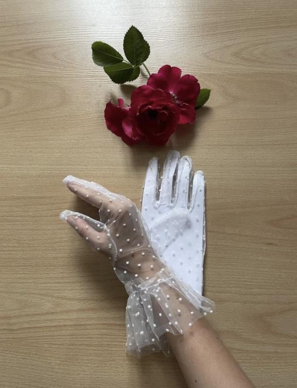 Короткие ажурные кружевные перчатки сетка свадебные вечерние В наличии белые и как на втором фото бежевые Элегантные и нежные перчатки из фатина. Для образа, то это то, что вам нужно. Размер: один размер, подойдут на S, M, L Замеры: длина - 27 см, ширина - 8 см. Ткань тянется. Цвет - белый