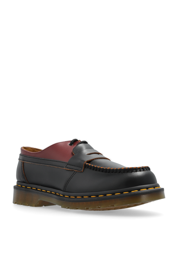 Introducing the MM6 Maison Margiela x Dr. Martens, a sophisticated pair of women\'s lace-up shoes crafted from the finest leather. This exclusive collaboration between the avant-garde MM6 Maison Margiela and the iconic Dr. Martens results in a unique fusion of elegance and contemporary design. The shoes feature a dominant black hue complemented by rich burgundy accents at the top of the upper, exuding an air of understated luxury. The exterior is made of high-quality leather, ensuring both durability and a refined aesthetic. Key construction details include a thick rubber sole adorned with Dr. Martens’ signature yellow stitching, and traditional lacing for a classic touch. A distinctive woven seam around the front adds a touch of unique style, while the interior houses the Dr. Martens logo, a testament to its authentic prestige. Why Choose This Product? Exquisite collaboration between two renowned brands High-quality leather for a luxurious appearance Unique design elements for a distinctive look Durable rubber sole with iconic yellow stitching Elegant color palette of black and burgundy