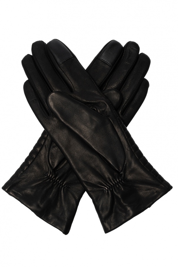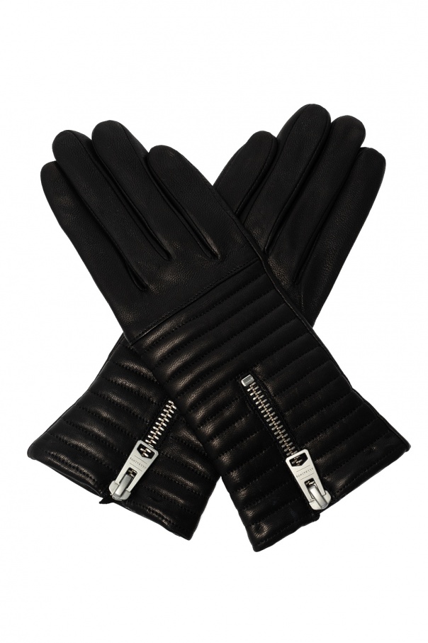 Black ‘Estela’ gloves from AllSaints. Crafted from goat leather, this design features zip fastening with a logo.
