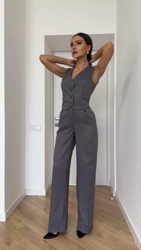 ❤️🔥Костюм в полоску с брюками❤️🔥 Костюм выполнен из костюмной ткани, качественный и стильный, отлично смотрится на разных типах фигур. Брюки палаццо из костюмной ткани в полоску 🛍️ цена - 1600 грн Жилет из костюмной ткани в полоску 🛍️ цена - 1400 грн При заказе вместе выгоднее (Костюм (Жилет+Брюки палаццо) из костюмной ткани в полоску ) 🛍️цена - 2600 грн ✔️Материал - Костюмная ткань. Костюмна тканина: * 50% вискоза - придает изделию мягкость и позволяет ей дышать * 46% полиэстер - помогает быть устойчивой к износу и деформации * 4% эластан - не позволяет ограничивать движения, придает эластичность ✔️Срок отправки1-3 рабочих дней с наличия Пошив: 6-9 рабочих дней 🛍️для подбора размера пишите ваши настройки и рост Предоплата наложним платежем 200 грн или полная оплата Подписывайтесь на профиль ❤️- много новинок и скидок каждый день