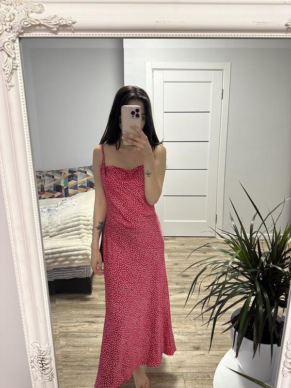 Сатинова сукня комбінація в горошок Хs-S на ОГ 83-92 ОБ до 96 По талії XS-S 60-69 Довжина сукні 100 см без бретелей. Бретелі регулюються